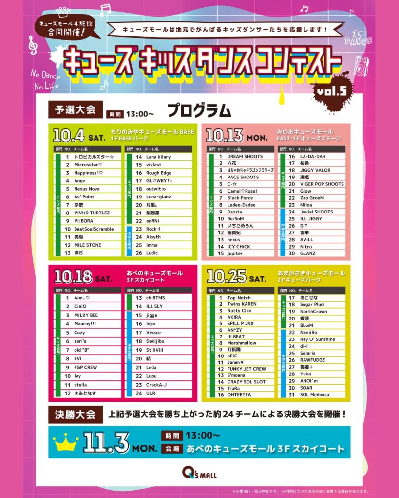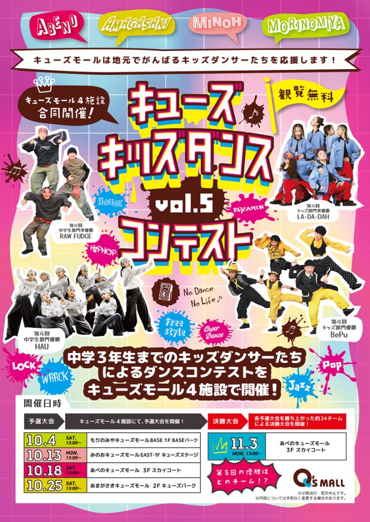 中学3年生までのキッズダンサーたちによるダンスコンテストをキューズモール4施設で開催いたします!