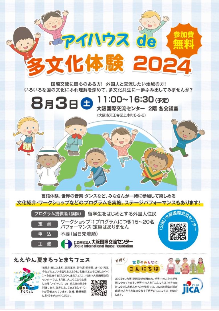 サマーバイキング!🍴🎆ええやん夏まるっとまちフェスNEWS2 …続きを読むてんしば夏祭り2024~Welcomingアベノ・天王寺🎆ええやん夏まるっとまちフェスNEWS2 …続きを読むアイハウスde多文化体験2024🎆ええやん夏まるっとまちフェスNEWS2 …続きを読む〈つくるつながるマルシェ〉選んで作ろう♪カラフルキーホルダー画像はイメージです。どんなのが作れるか楽 …続きを読むちいさな縁日 by 錢屋本舗本館🎆ええやん夏まるっとまちフェスNEWS2 …続きを読むミオ水着マルシェ🎆ええやん夏まるっとまちフェスNEWS2 …続きを読む♨🐼♨パンダ銭湯パネル展🎆ええやん夏まるっとまちフェスNEWS2 …続きを読むヴァイオリン・チェロ無料体験会🎻🎆ええやん夏まるっとまちフェスNEWS2 …続きを読む〈ティップネス天王寺〉施設無料体験🎆ええやん夏まるっとまちフェスNEWS2 …続きを読むまちとみんなとこどもとひろば~こそだてらす🎆ええやん夏まるっとまちフェスNEWS2 …続きを読むアロマサロンで初めてのケア体験🎆ええやん夏まるっとまちフェスNEWS2 …続きを読むnutfinkの個展 Vol.1🎆ええやん夏まるっとまちフェスNEWS2 …続きを読む‹1…1314151617…39›ええやんまちフェス
