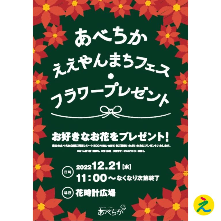 🍫ええやんまちフェス2月情報😍まだまだ寒い日が続きますが、立春もすぎて …続きを読む『月夜のambient』-松森清昭作品展-この列車は、どこに連れていってくれるので …続きを読む日本でやりがいのある仕事に就くための講座(外国人住民・留学生向け)中小企業診断士のアイハウスボランテイアが …続きを読む🎍ええやんまちフェス1月情報🎍みなさま!あけましておめでとうございます …続きを読むフラワープレゼント【あべちか】12月21日(水)の1日限定イベント!イ …続きを読む💁食べるでつながるあべの☕🍕🍰辻調グループの学生たちが作った料理やお菓 …続きを読むベトナムのくらしとごはんのおはなし💁ベトナムの食文化を学びませんか? JI …続きを読む💁てんしばクリスマス!🎄てんしばクリスマス(略しててんクリ!)開 …続きを読む🎄ええやんまちフェス12月情報🎄キラキラ✨のイルミネーションが綺麗な季節 …続きを読むてんしば⛸️スケートリンク天王寺に、冬限定のアイススケートリンクが …続きを読む【プロQ学園】さまざまなプロからスゴワザを学べる!ええやんまちフェスまるっと文化祭NEWS …続きを読むプラザ館60周年写真展/思い出メッセージ展☕ええやんまちフェスまるっと文化祭NEW …続きを読む‹1…3132333435…40›ええやんまちフェス