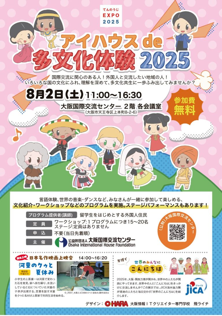 💁涼やかに香る大人の癒し・アロマストーン作り🍉ええやん夏まるっとまちフェス ええやん …続きを読むササラサラ―竹林なの―🍉ええやん夏まるっとまちフェスNEWS2 …続きを読む💁アイハウス de 多文化体験2025🍉ええやん夏まるっとまちフェス ええやん …続きを読む👪小さな縁日&親子ワークショップ🍉ええやんまちフェス ええやんまちゼミ2 …続きを読む📢てんしば夏祭り🙌🎆ええやん夏まるっとまちフェスNEWS2 …続きを読む🎥日本名作映画上映会(外国語字幕付)🎬©2007 木暮正夫「河童のクゥと夏休み …続きを読む💁キッズビジネススクール🎆ええやん夏まるっとまちフェス ええやん …続きを読む🎵ウクレレで70年代アイドル🎤の曲を弾こう!🍉ええやんまちフェス ええやんまちゼミ2 …続きを読む🐼パンダ銭湯パネル展🐼🍉ええやん夏まるっとまちフェスNEWS2 …続きを読むカブトムシつかみ捕り!世界のカブトムシ・クワガタ展🍉ええやん夏まるっとまちフェス ええやん …続きを読む🎵カリンバ体験🍉ええやん夏まるっとまちフェス ええやn …続きを読む💁初めてのハーブよもぎ蒸し・アロマエステ体験さまざまなハーブがありますね♪ 🍉ええや …続きを読む‹1…678910…41›ええやんまちフェス
